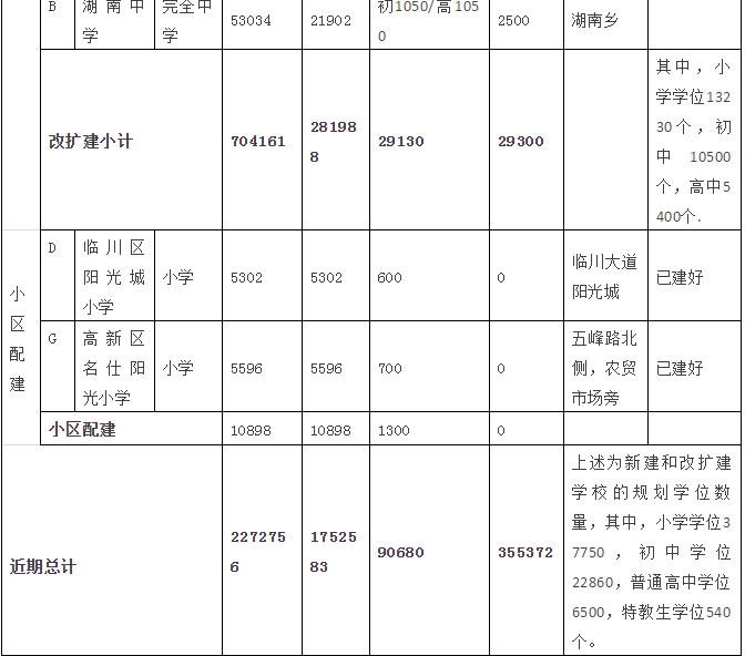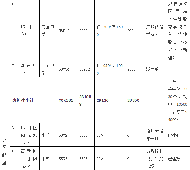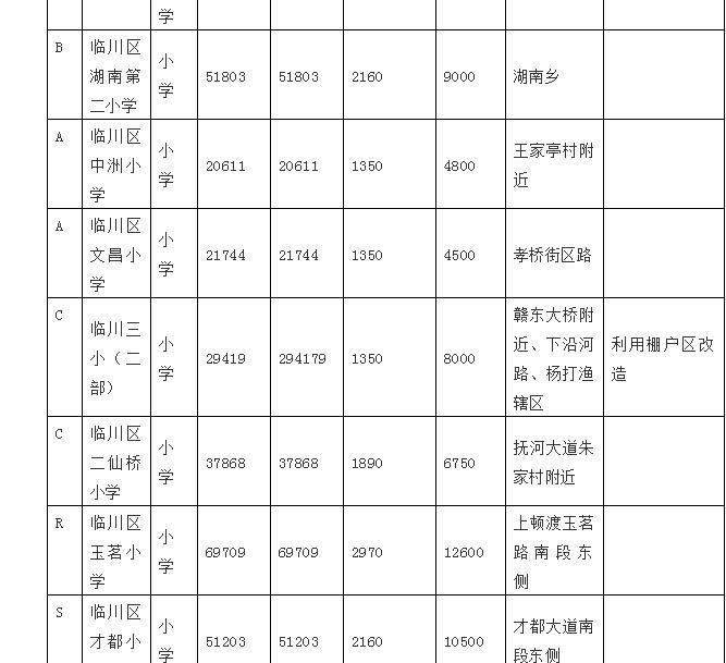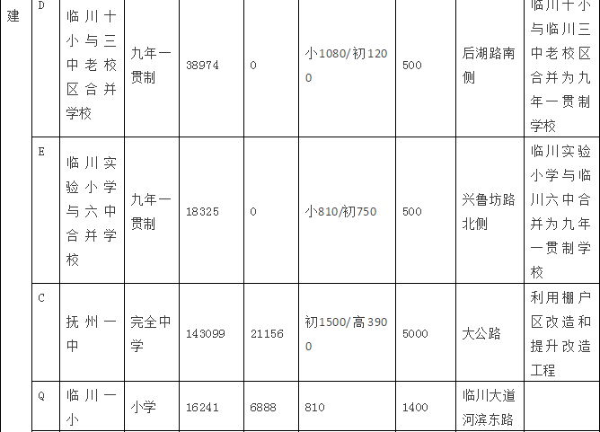 近期臨川城區(qū)擴(kuò)建5所小學(xué),為偉星小學(xué)、高新二小、高新三小、臨川一小、小圩小學(xué);擴(kuò)建1所九年一貫制學(xué)校,為金巢實(shí)驗(yàn)學(xué)校;擴(kuò)建2所完全中學(xué),為撫州一中、臨川十六中。